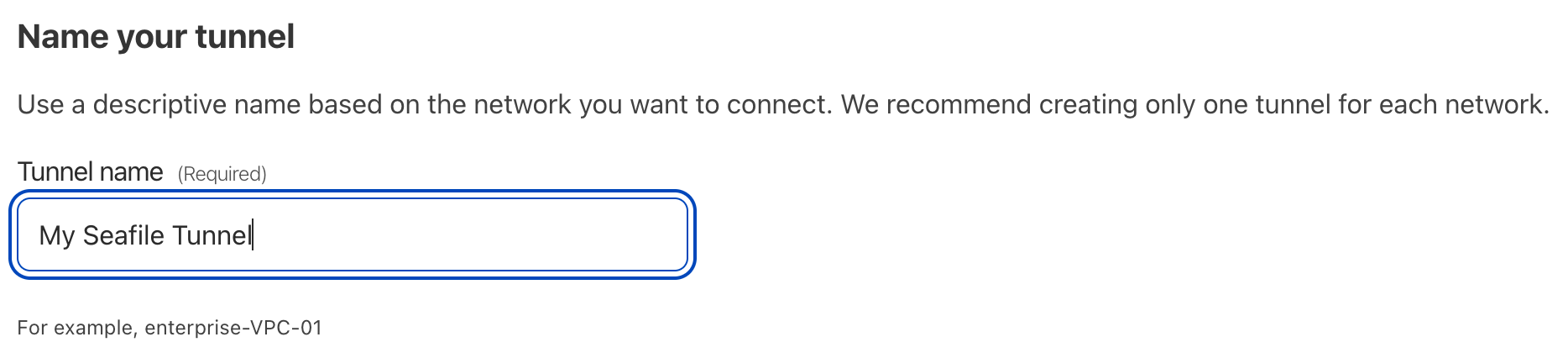 Give the tunnel a name and click Create.